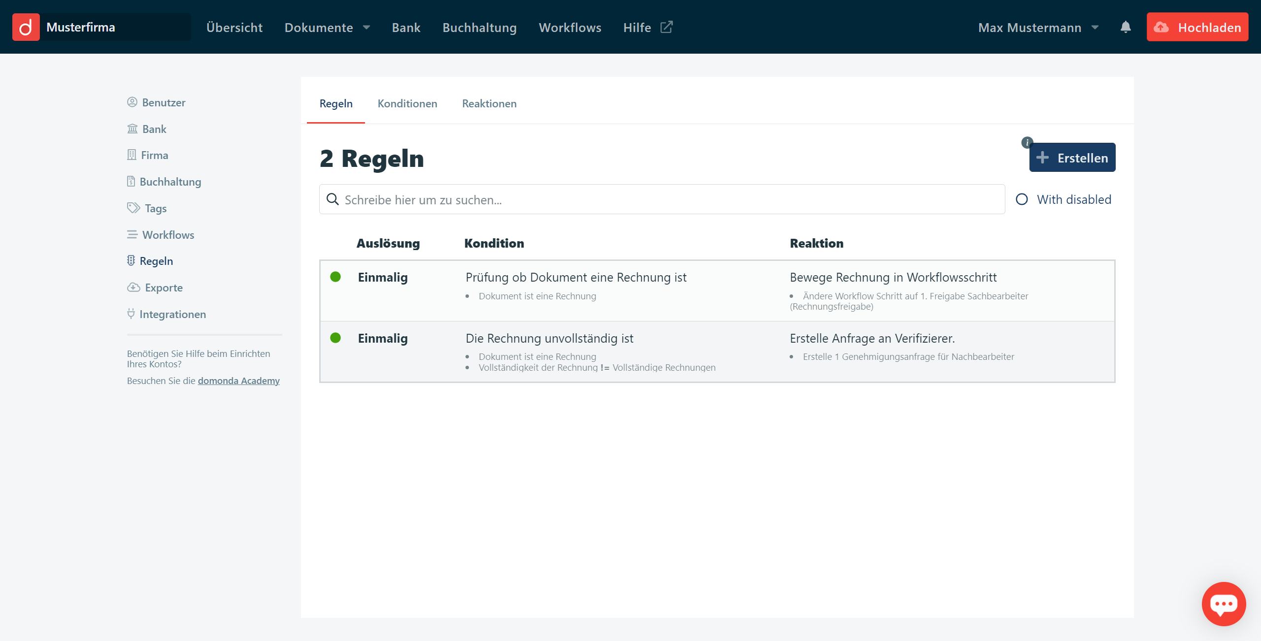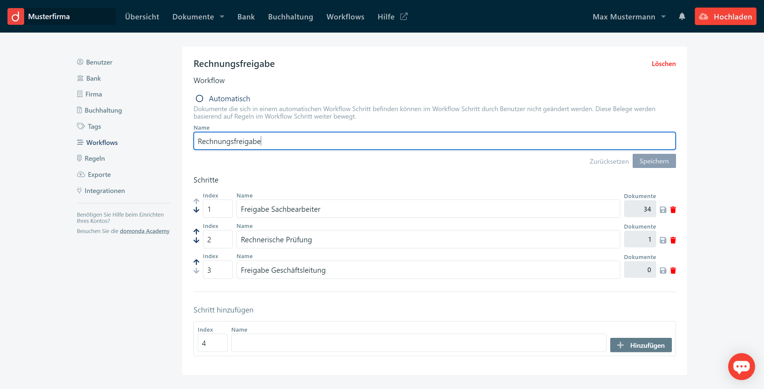 “Eingangsrechnungen unter 50€ werden automatisch freigegeben”.