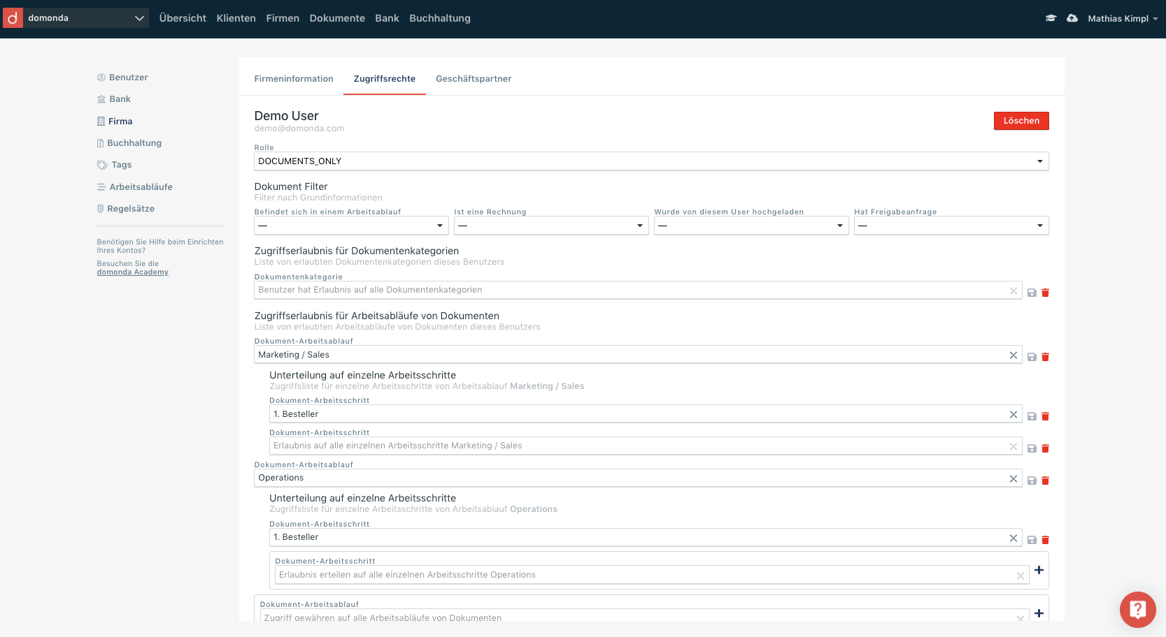 Bei Bedarf werden die Rechte der jeweiligen Benutzer eingeschränkt, sodass diese nur Dokumente in jenen Arbeitsschritten sehen können, die ihnen zugewiesen wurden.