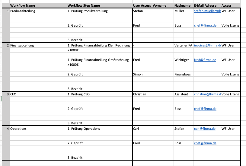 Serielle Workflows werden in einer Tabellenstruktur definiert: